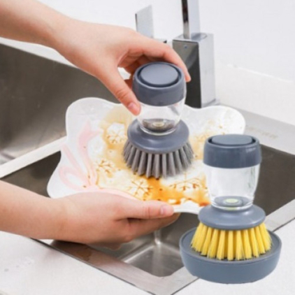 Nombre: Cepillo dispensador de jab�n multifuncional Material: Pl�stico duradero y cerdas de nylon resistentes Uso principal: Ideal para lavar platos, ollas, sartenes y utensilios de cocina. Dise�o: Incluye un dep�sito integrado para jab�n l�quido, que se dispensa con solo presionar la parte superior. Ventajas: Reduce el consumo de jab�n, evita el contacto directo con detergente y facilita una limpieza profunda. Beneficios: Ahorra tiempo, protege las manos y mejora la higiene en la cocina. Mantenimiento: F�cil de desmontar y limpiar. Tama�o: Compacto y pr�ctico, perfecto para uso diario en el hogar.