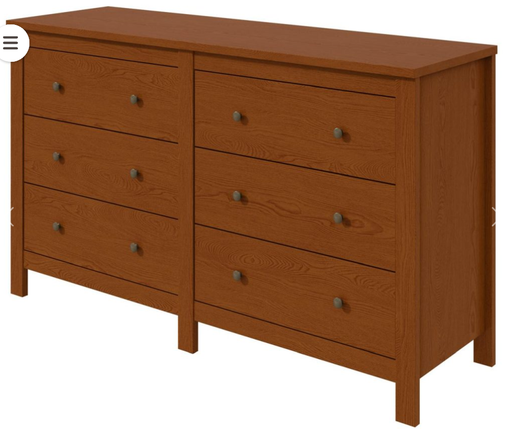 Fabricada en MDP y MDF, cuenta con 6 cajones con correderas telescópicas, tiradores de metal con acabado en Oro Viejo, diseño rústico con un toque retro.